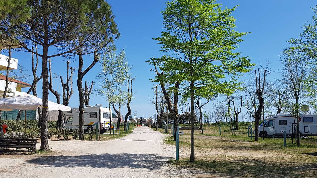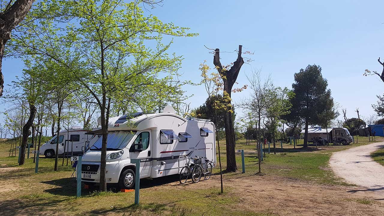 Il Camping può ospitare fino a 900 ospiti, dispone di piazzole spaziose e ombreggiare, spiaggia privata attrezzata, servizio di bar, pizzeria, ristorante e market.